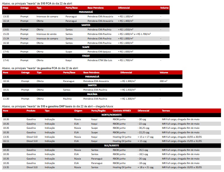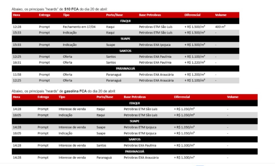 • Convite: No dia, 28 de abril, às 11h de Brasília, vamos realizar no LinkedIn live um webinar sobre as pressões externas no mercado de diesel brasileiro. Link do evento.